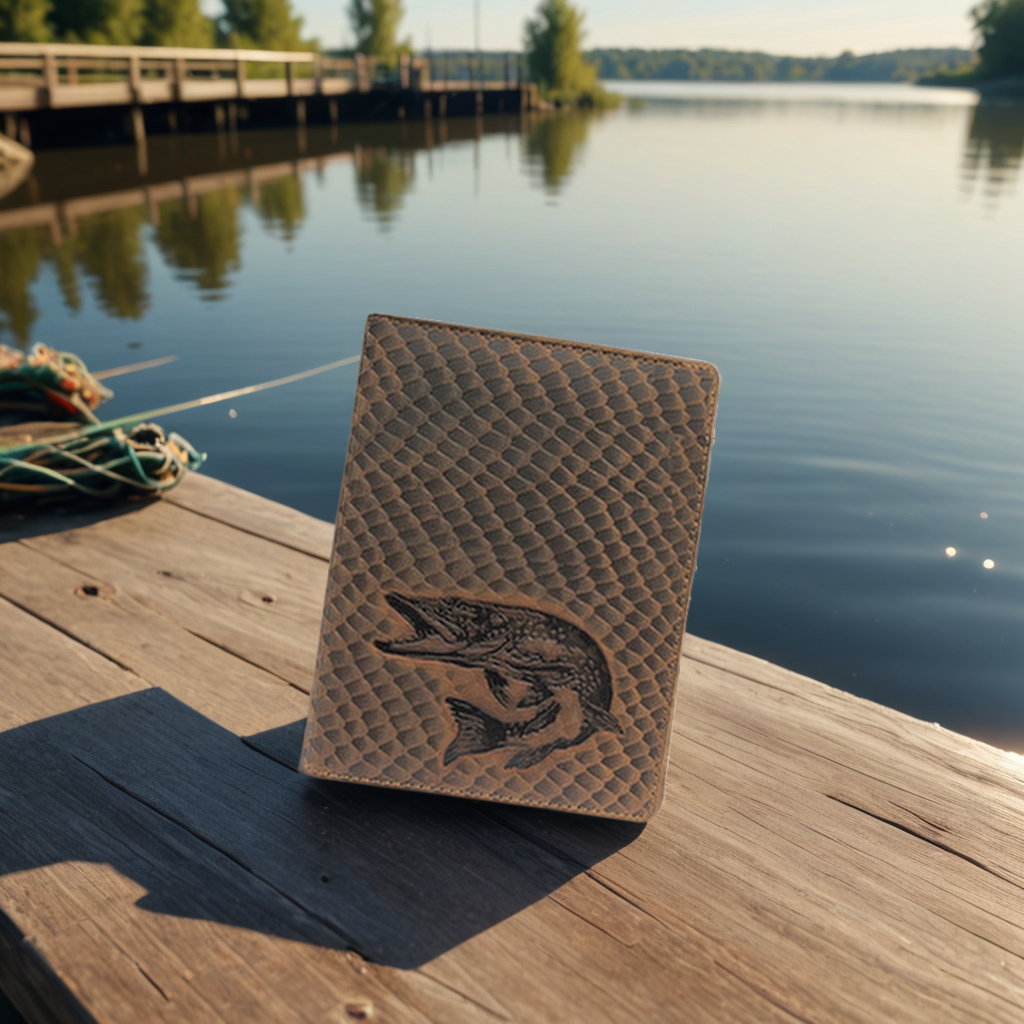 Dokumentenhülle Fischereischein Hecht auf Fischhaut