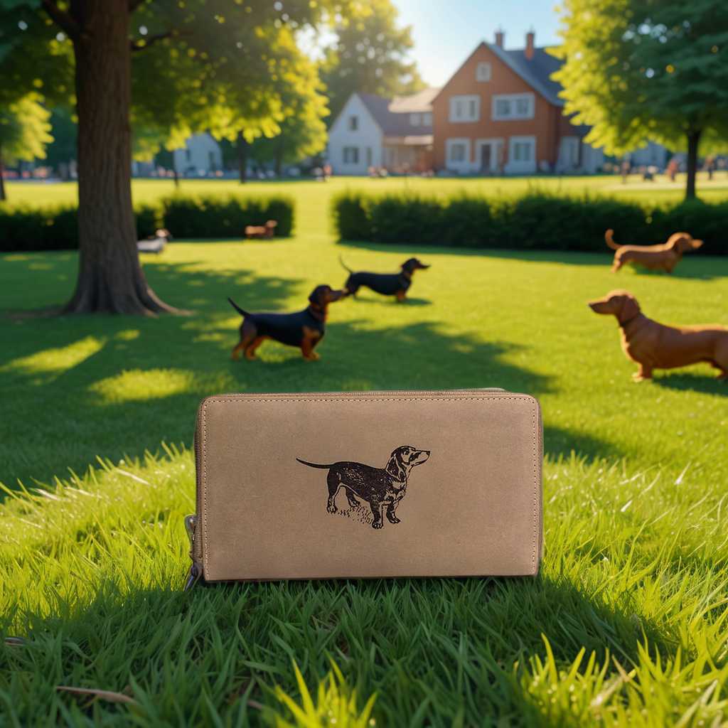 Die Geldbörse wird mit einem Reißverschluss verschlossen. Aufgeklappt befindet sich rechts und links jeweils an der Rückseite ein großes Einsteckfach. Davor jeweils quer 6 Kartensteckfächer. Es folgen insgesamt 4 große Fächer für Geldscheine, Handys etc. und mittig ein Münzenfach, verschließbar mit einem Reißverschluss.