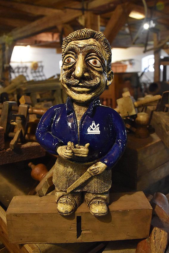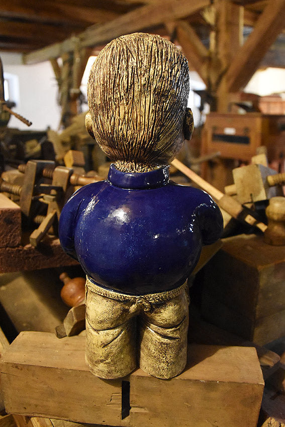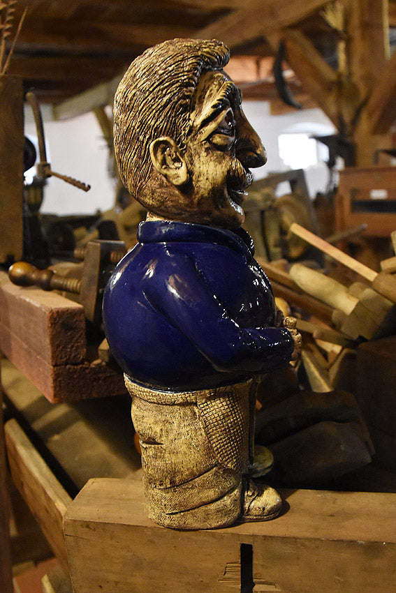 Wird aus Schamotte produziert, mit 1.200 Grad gebrannt und mit ökologischen Farben bemalt. Hält Temperaturschwankungen aus, daher auch im Freien aufstellbar.