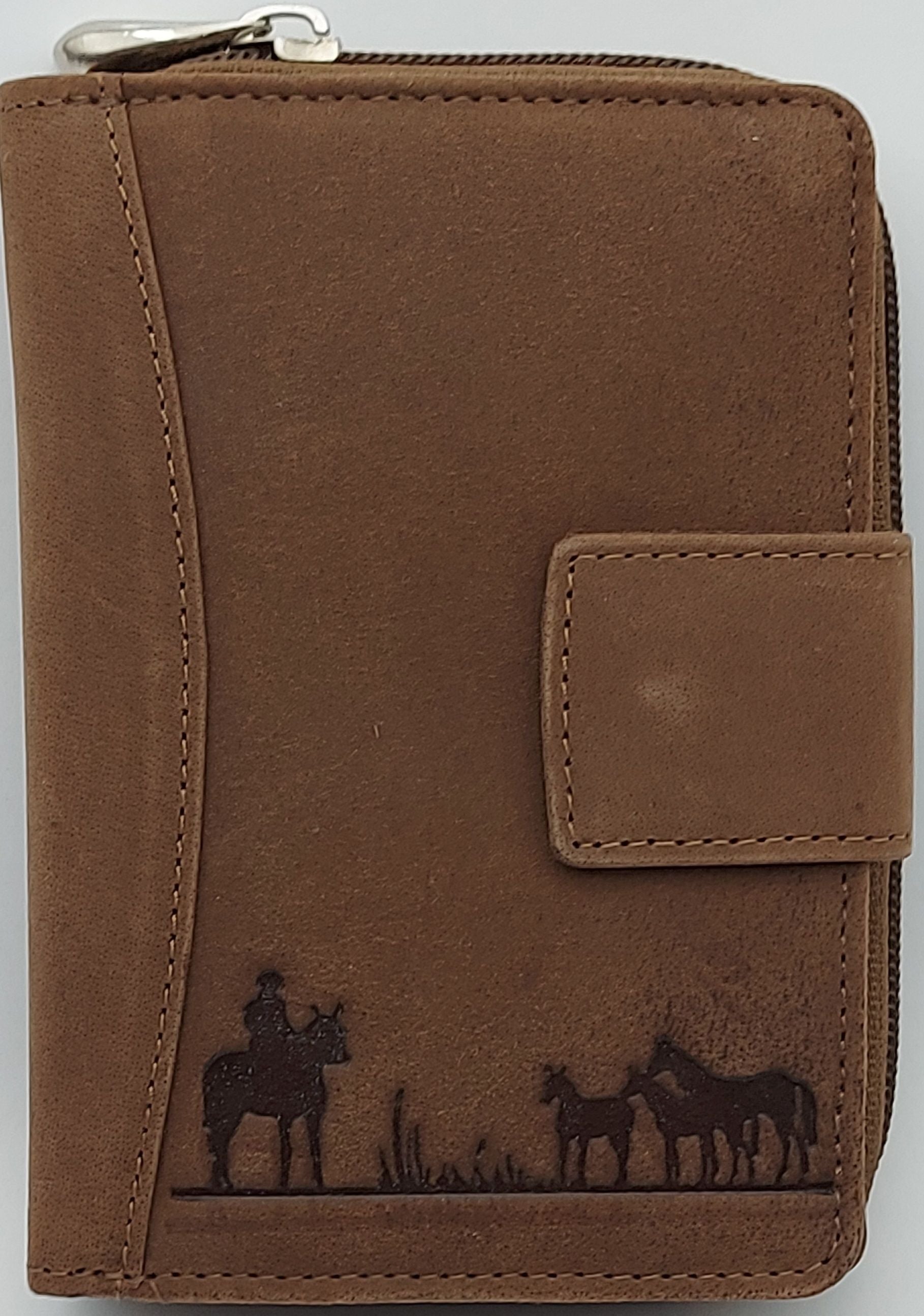 Verschlossen wird mit einer Lasche mit Druckknopf, welche rechts mittig der Geldbörse angebracht ist.