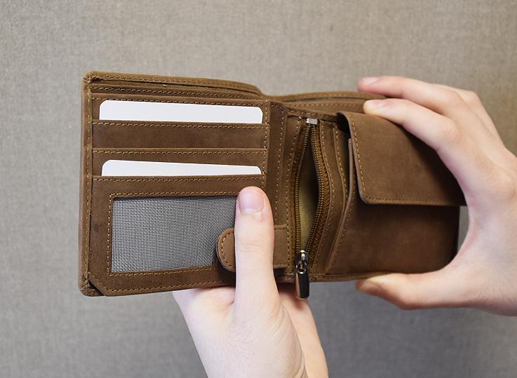 Mittig der Geldbörse versteckt jeweils ein großes Einsteckfach nach links bzw. rechts gehend und mit einem Reißverschluss verschließbar.