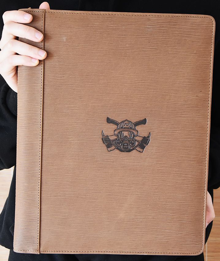 Leder A4 - Schreibmappe / Mappe Feuerwehr Maske