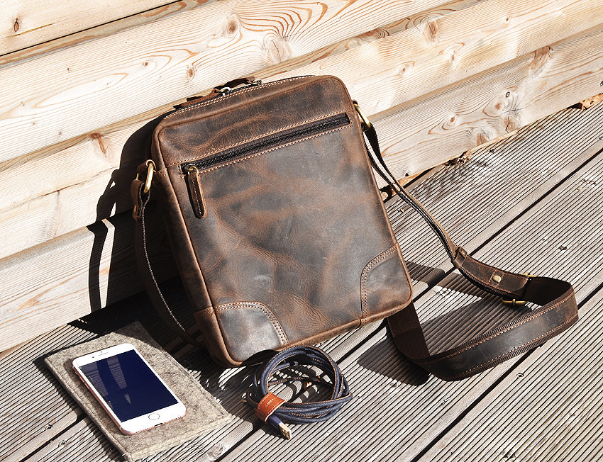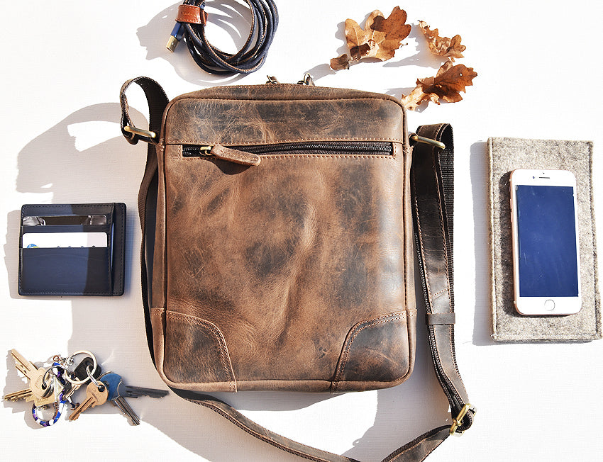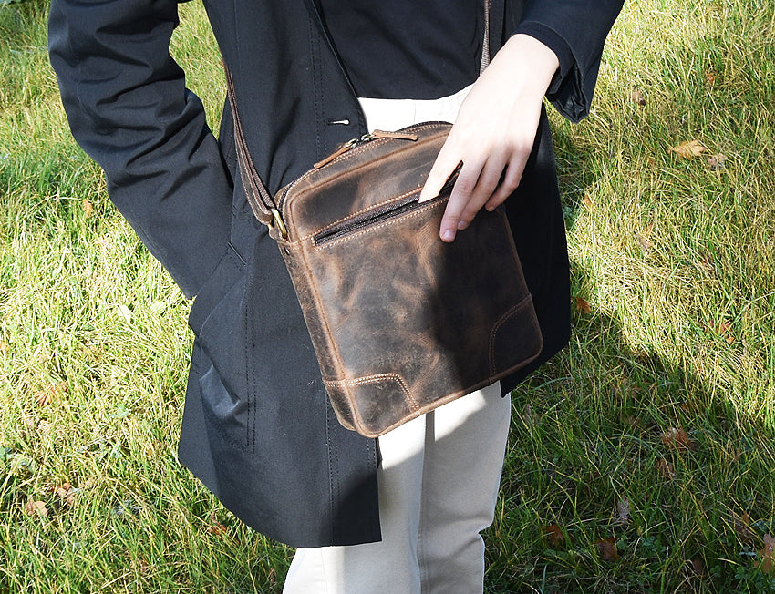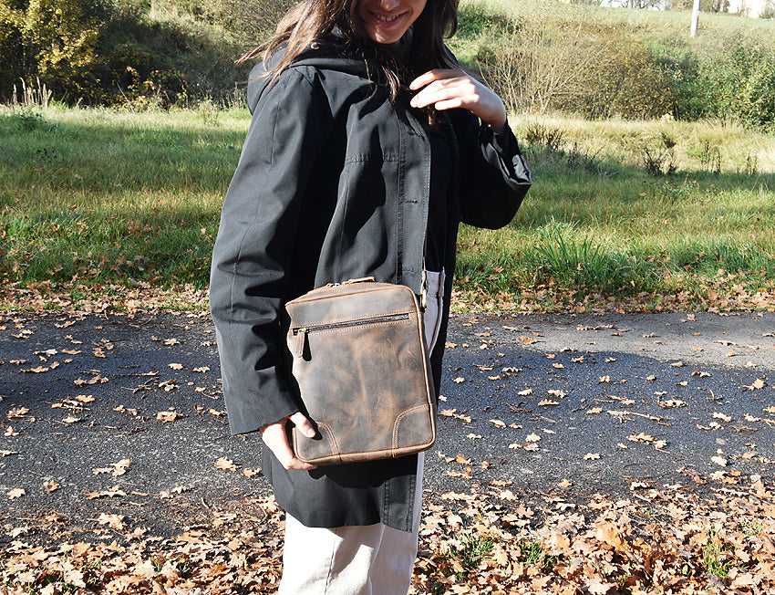 Die Schultertasche erweist sich als der ideale Begleiter für einen entspannten Stadtbummel oder eine aufregende Wanderung. Immer dann, wenn Mann seine wichtigsten Utensilien bei sich tragen möchte, ohne sämtliche Jacken- oder Hosentaschen überquellen zu lassen, erweist sich diese Umhängetasche als perfekte Lösung. Übrigens liegt diese hochwertige Tasche in der Farbe Antikbraun voll im Trend der Zeit, weshalb sie auch als eine schöne Geschenkidee betrachtet werden kann.