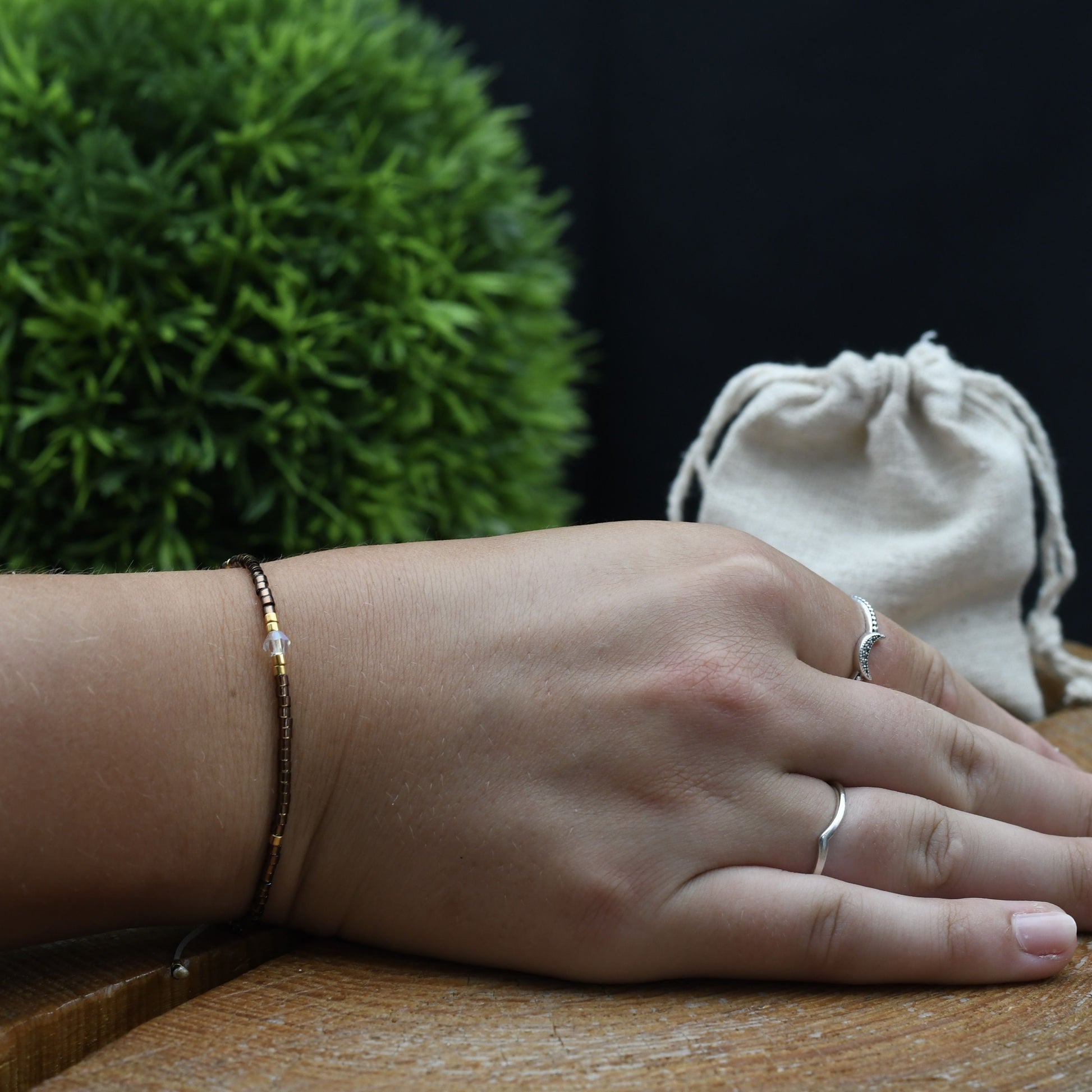 Liebevoll verpackt, sind unsere Armbänder in einem Baumwollsäckchen.